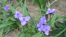 Ещё один кустик, который кочует ежегодно по всем цветникам - традесканция садовая. Много кустов я не рассаживаю, потому что сеется она сама и вырастает и без меня, везде) Люблю её за неприхотливость и постоянное цветение. Видов и расцветок её в природе - огромное множество. У нас три - почти белая, синяя и сиреневая.